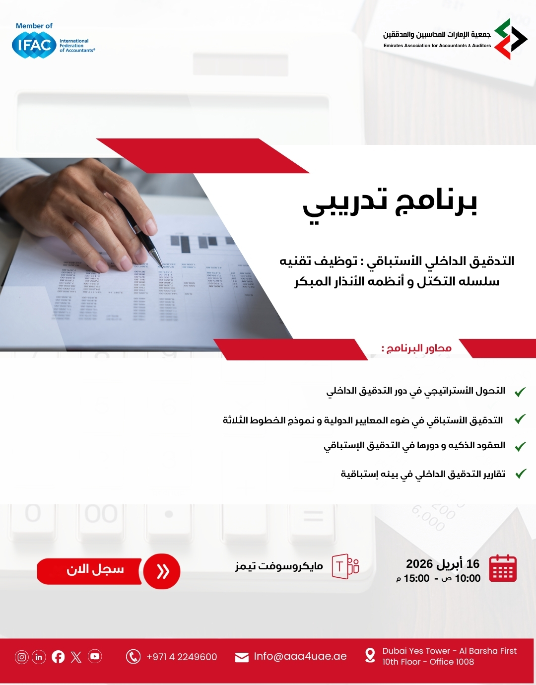 التدقيق الداخلي الأستباقي : توظيف تقنيه سلسله التكتل و أنظمه الأنذار المبكر | أبريل 2026